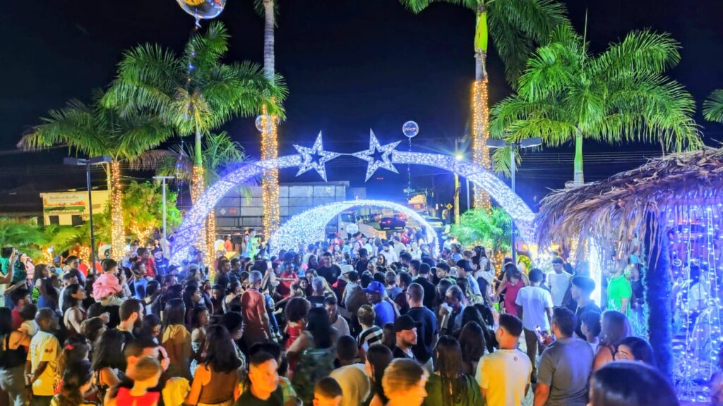 Centenas de pessoas de Papagaios e cidades da região prestigiaram a inauguração do ‘Natal Magia’ na noite deste sábado (29), na Praça Padre Waldemar, no