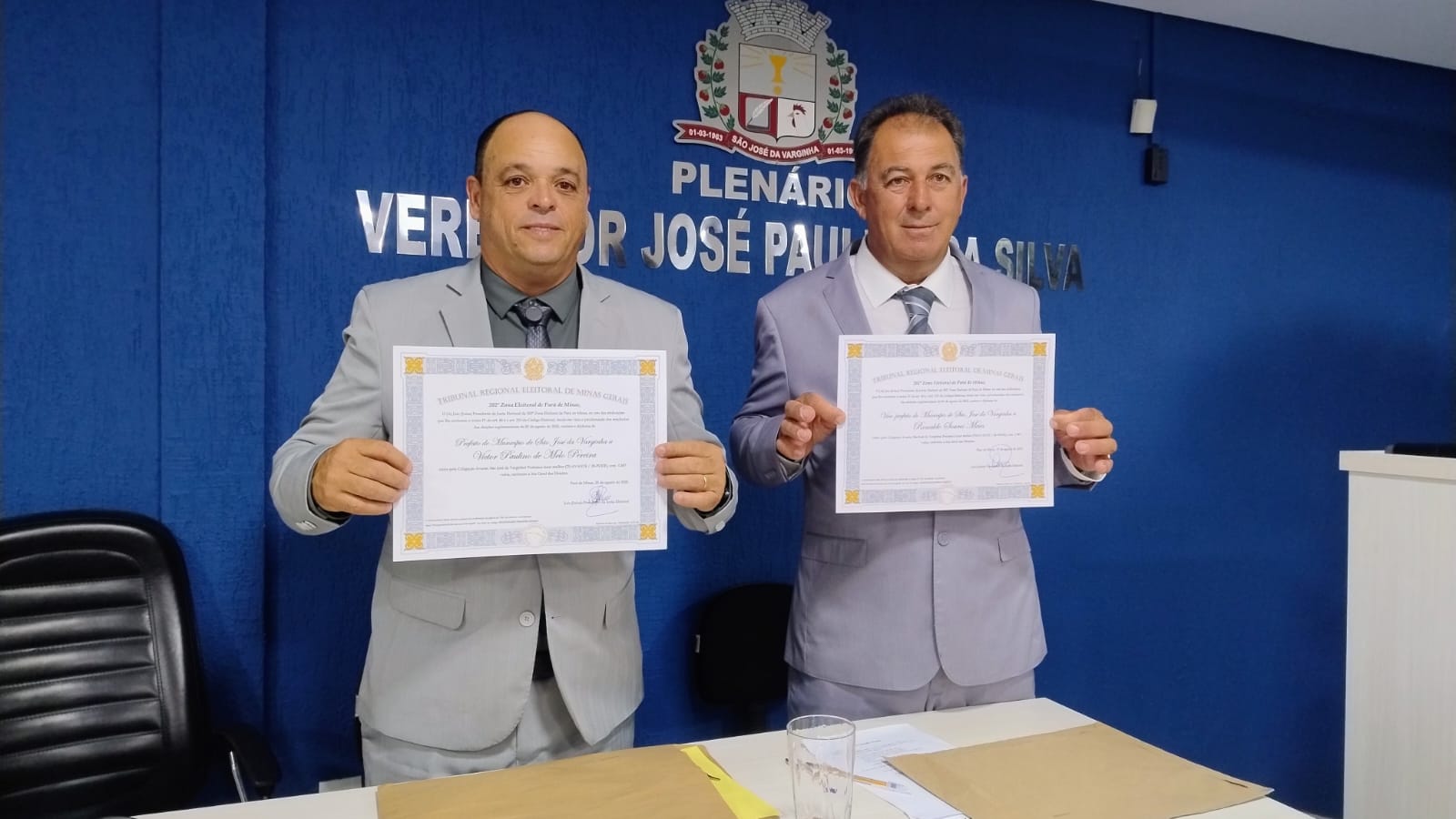 Após a vitória nas urnas em três de agosto, conquistando 1.587 votos, representando 50,91% dos votos válidos, Victor Paulino de Melo, o Victor Gordo da Saúde como popularmente é conhecido, foi empossado a prefeito de São José da Varginha, junto do vice Ronaldo Maia. A cerimônia aconteceu no início da noite desta quinta-feira (28), na Câmara Municipal com a presença de centenas de pessoas que lotaram o plenário.